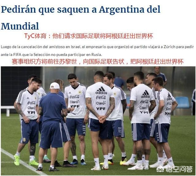 并非是以色列足协上诉到国际足联,想把阿根廷队赶出世界杯,实际上是组织这场比赛的中介公司COMTEC向国际足联起诉阿根廷足协,名义是“宗教歧视”。以色列足协在自己的推特上已经发表了澄清一些事件的声明,首先他们只是在国际足联对巴勒斯坦足协提出抗议,而没有对阿根廷足协提出抗议。其次,以色列足协希望未来还可以和阿根廷队进行友谊赛,时间待定,也就是说以色列足协希望和阿根廷足协保持好关系,根本就没有上诉到FIFA的事。